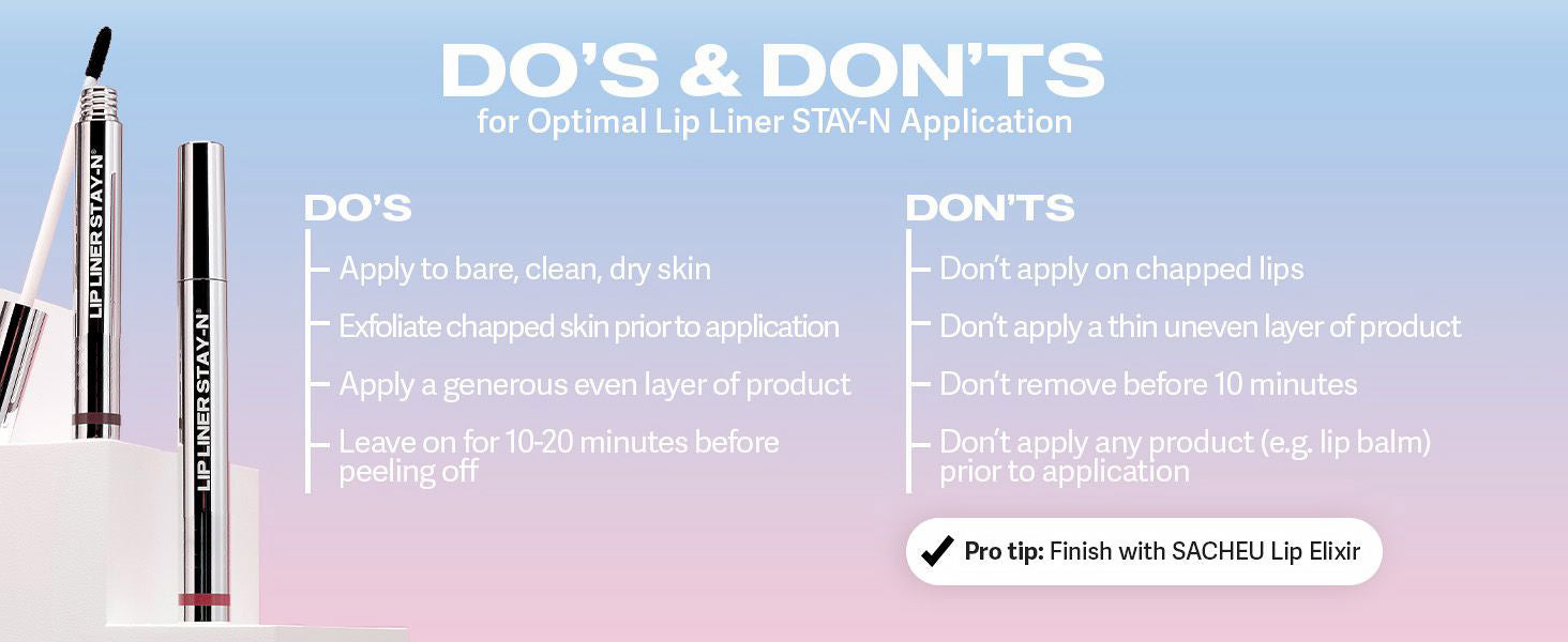 lip line with a generous, even layer of LIP LINER STAY-N. - Wait 15–20